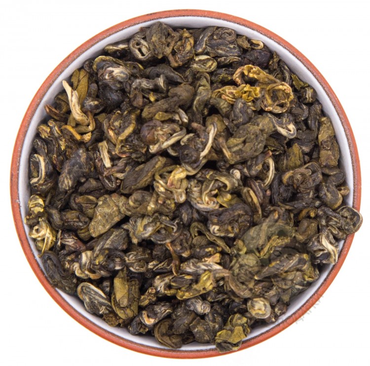 Жасминовый чай Моли Чжэнь Ло (Жасминовая Улитка) – одна из разновидностей зеленого чая с жасмином, для производства которого используются собранные вручную нежные чайные флеши. Сырье подвяливают на солнце и затем скручивают в форме улиток, чем и обуславливается название данного напитка. Цветки жасмина, используемые для изготовления чая Моли Чжэнь Ло (Жасминовая Улитка), собирают на плантациях провинции Фуцзянь в течение 15-ти самых жарких дней в году.